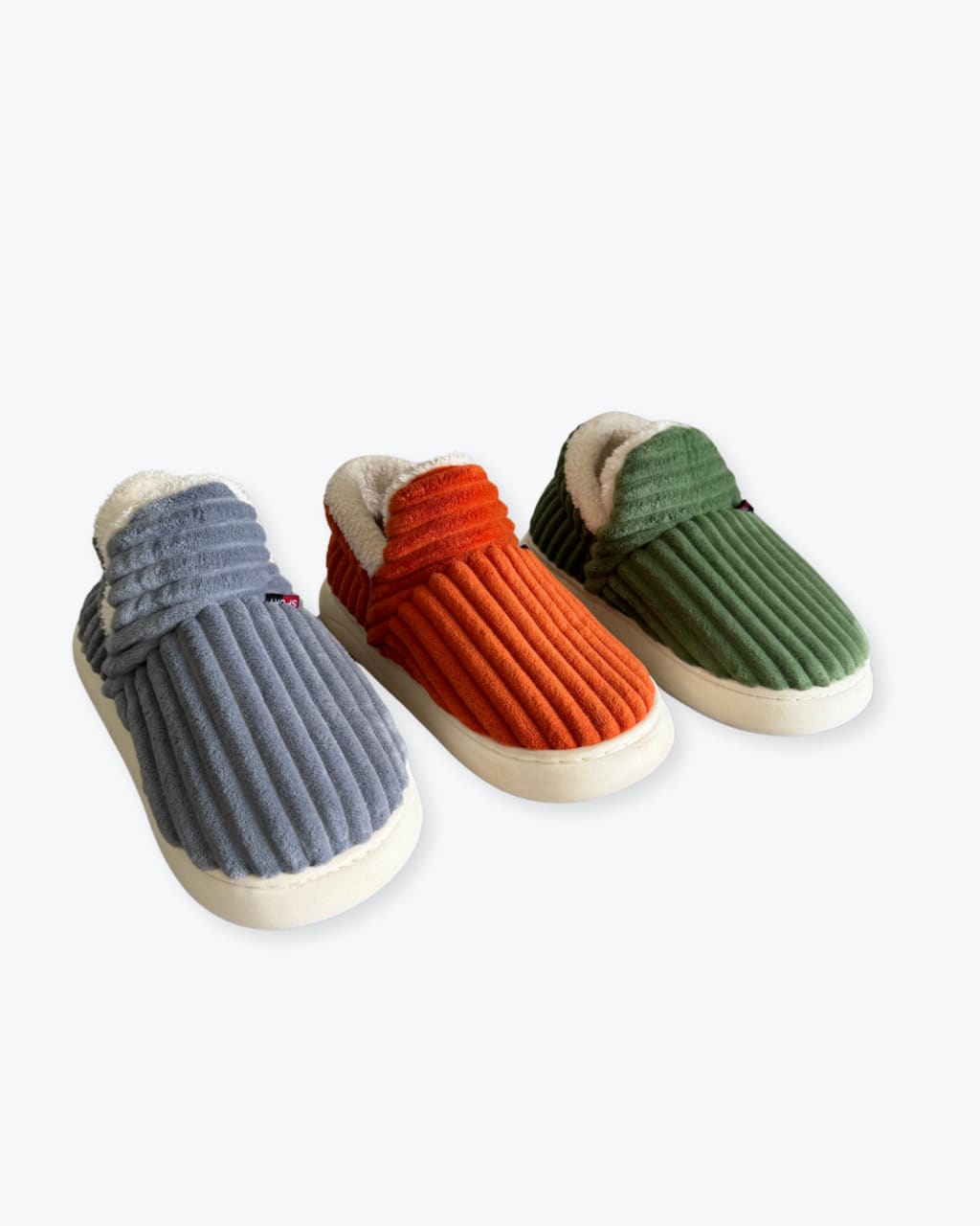 Comfello łączy w sobie miękką bawełnianą welurową powierzchnię zewnętrzną, przytulną flanelową wyściółkę i 4-centymetrową podeszwę z pianki EVA, tworząc idealne kapcie domowe. Teksturowana, antypoślizgowa podeszwa zewnętrzna zapewnia stabilność, a możliwość prania w pralce gwarantuje łatwą pielęgnację.